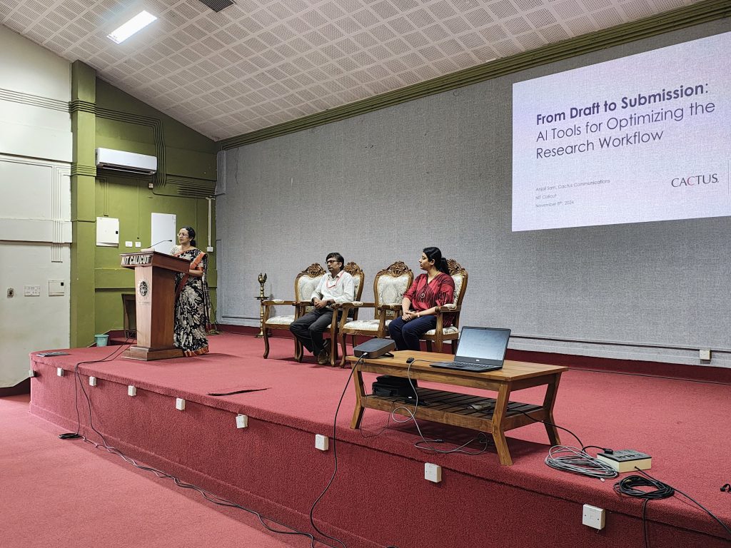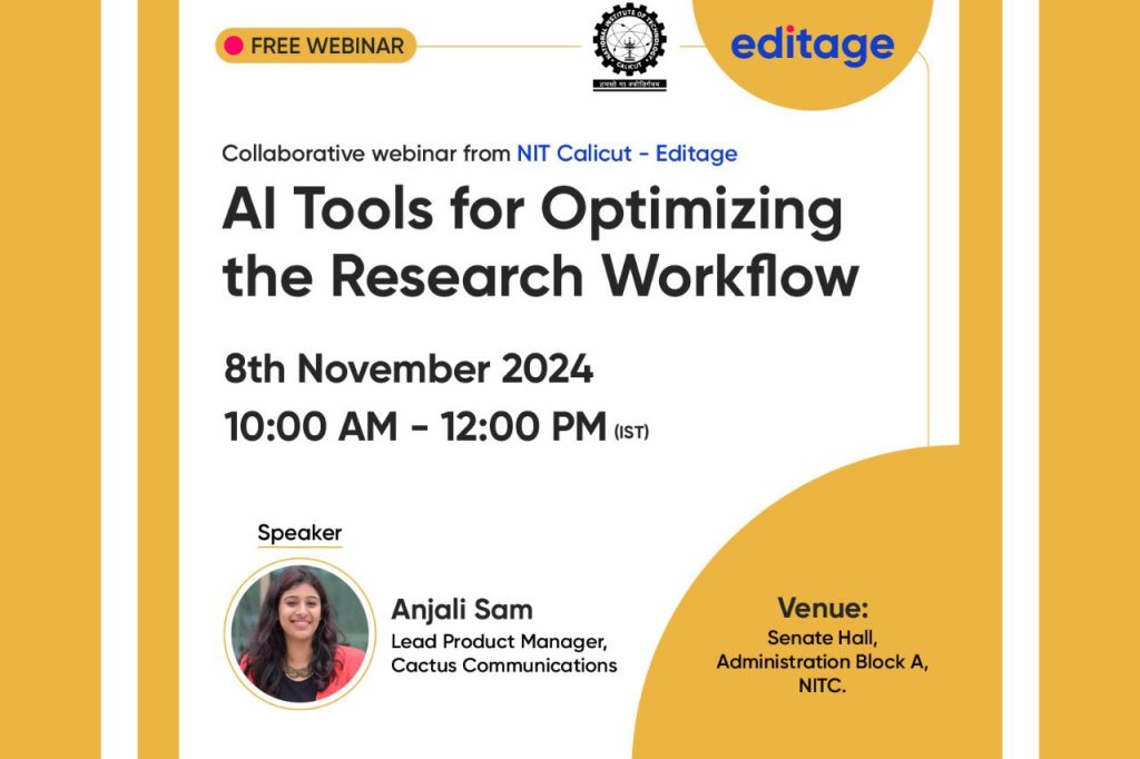 Editage, the flagship brand of Cactus Communications (CACTUS), in collaboration with National Institution of Technology Calicut (NIT-C), successfully conducted an insightful workshop on “AI Tools for Optimizing the Research Workflow.” The event garnered participation from over 150 students and researchers, emphasizing the potential of AI in the research process.