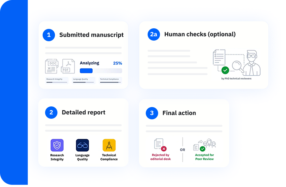 A state-of-the-art hybrid human + AI solution for alleviating the editorial workload, uphold research integrity thereby safeguarding publisher’s reputation. Read more